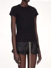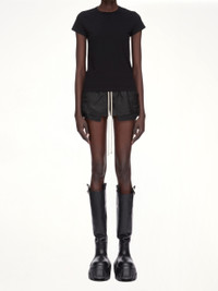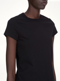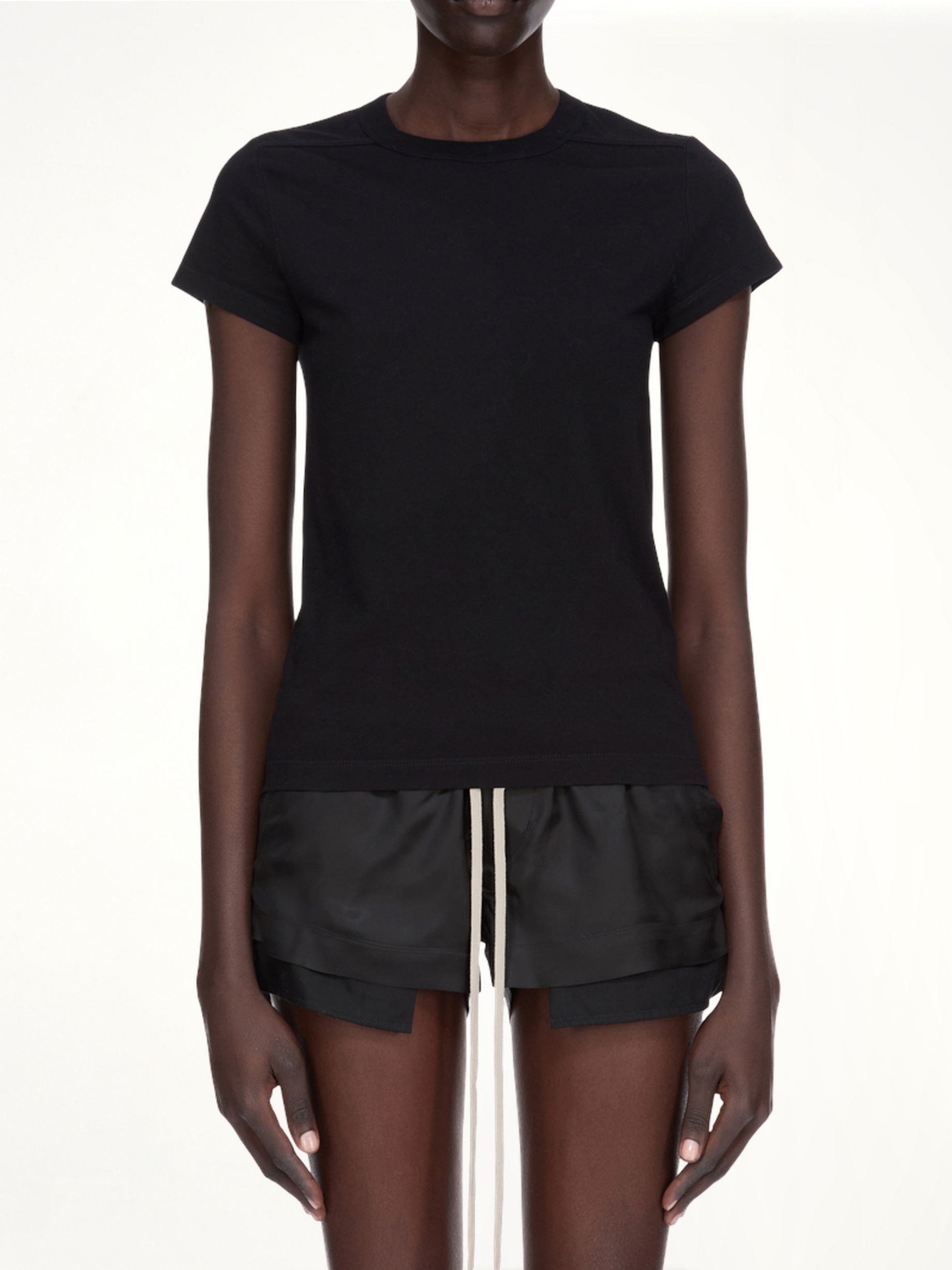 Rick Owens's Cropped Level T in Black is a modern and edgy piece that embodies the designer's signature avant-garde style. This top features a unique silhouette that adds a bold statement to any outfit. - Composition: 100% Cotton - Cropped length for a contemporary look - Relaxed fit for comfort and ease - Minimalist design with a focus on structure - Versatile piece suitable for layering - Distinctive black colour for a sleek appearance - Made in Italy SKU: RP02E4235 JA 09