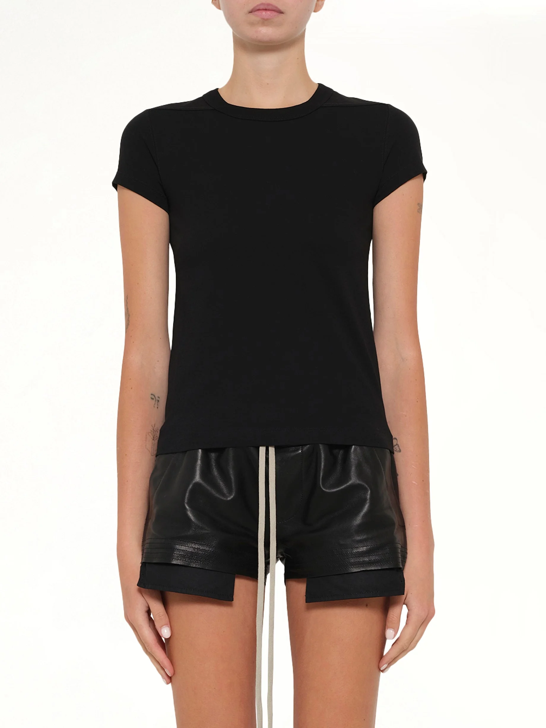 Rick Owens's Cropped Level T in Black is a modern and versatile piece that embodies the designer's signature avant-garde aesthetic. This top features a unique silhouette that adds a touch of edge to any outfit. - Composition: 100%Cotton- - Cropped length for a contemporary look - Relaxed fit for comfort and style - Minimalist design with a focus on structure - Perfect for layering or wearing on its own - Made in Italy Model is 178 cm and wears size 40 SKU: RP01F6235 JA 09