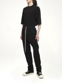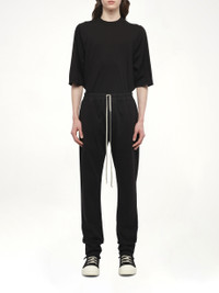 Rick Owens DRKSHDW's Berlin Drawstring in Black is a versatile and stylish addition to any wardrobe. This piece combines functionality with a modern aesthetic, making it perfect for both casual and elevated looks. - Composition: Band 97% Cotton -3% Elastane - Adjustable drawstring waist for a customizable fit - Relaxed silhouette for comfort and ease - Signature Rick Owens DRKSHDW design elements - Black colorway for versatile styling - Ideal for layering or standalone wear - Made in Italy Model is 187 cm and wears size M SKU: DU02E7392 RIG 09