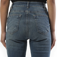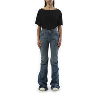 Crafted from high-quality denim, these jeans feature a flattering bootcut silhouette that elongates your legs. The washed indigo color adds a touch of vintage charm, making them a versatile and timeless addition to your wardrobe. - Composition: 91% Cotton, 6% Elastomultiester, 3% Rubber Pockets - Straight fit mid rise - 6 pockets - Floor length slight bootcut - Made in Italy Model is 175 cm and wears size 26 SKU: DS01E3302 SDWB 06