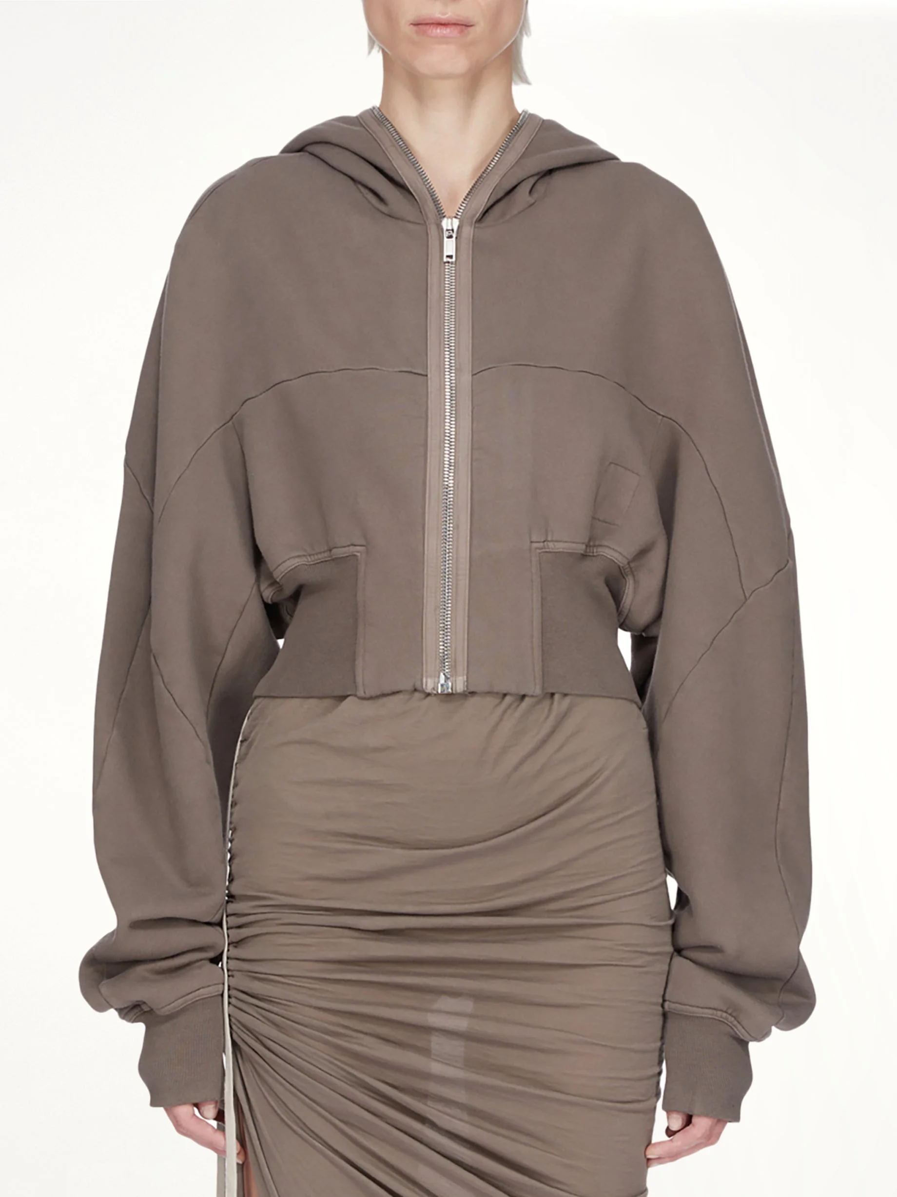 Rick Owens DRKSHDW's Collage Gimp Hoodie in Dust is a distinctive piece that combines avant-garde design with everyday functionality. This hoodie features a unique collage pattern that adds a modern edge to any outfit. - Composition: 100%Cotton- - Avant-garde design with a collage pattern - Relaxed fit for comfortable wear - Adjustable drawstring hood - Front kangaroo pocket for convenience - Ribbed cuffs and hem for a snug fit - Made in Italy Model is 178 cm and wears size S SKU: DS01F4233 F 34