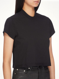 Rick Owens DRKSHDW's Cropped Small Level T-Shirt in Black is a modern staple for any wardrobe. This piece combines a minimalist design with a unique silhouette, perfect for versatile styling. - Composition: 100%Cotton- - Cropped fit for a contemporary look - Classic black color for easy pairing - Signature DRKSHDW aesthetic - Comfortable and lightweight - Ideal for layering or standalone wear - Made in Italy SKU: DS02E7207 RN 09