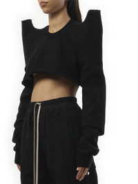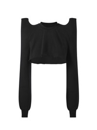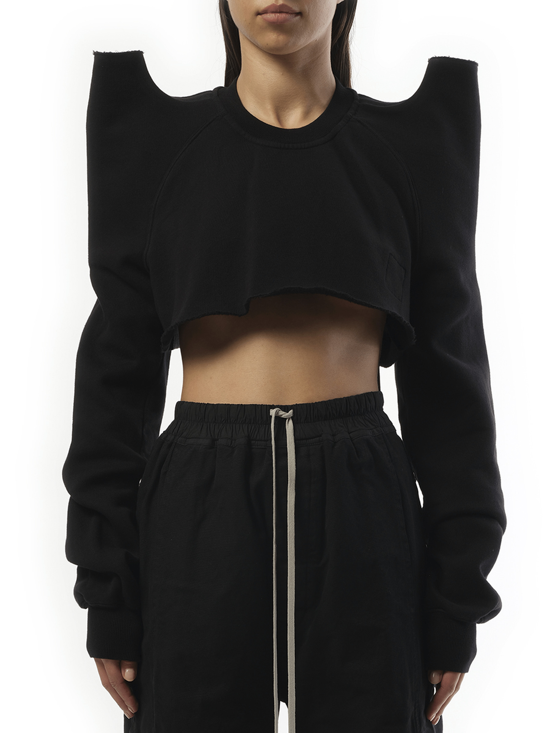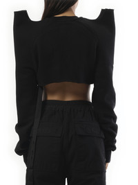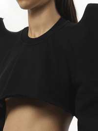 The Cropped Tec Sweater in Black offers a stylish and modern look for any occasion. Made with high-quality, breathable fabric, this cropped sweater provides both comfort and style. Perfect for pairing with high-waisted bottoms, it's a versatile piece for any wardrobe. - Composition: 100% Cotton - Ribbed cuffs - Crew neck - Sculpted arms - Made in Italy Model is 175 cm and wears size S SKU: DS01E3213 F 09