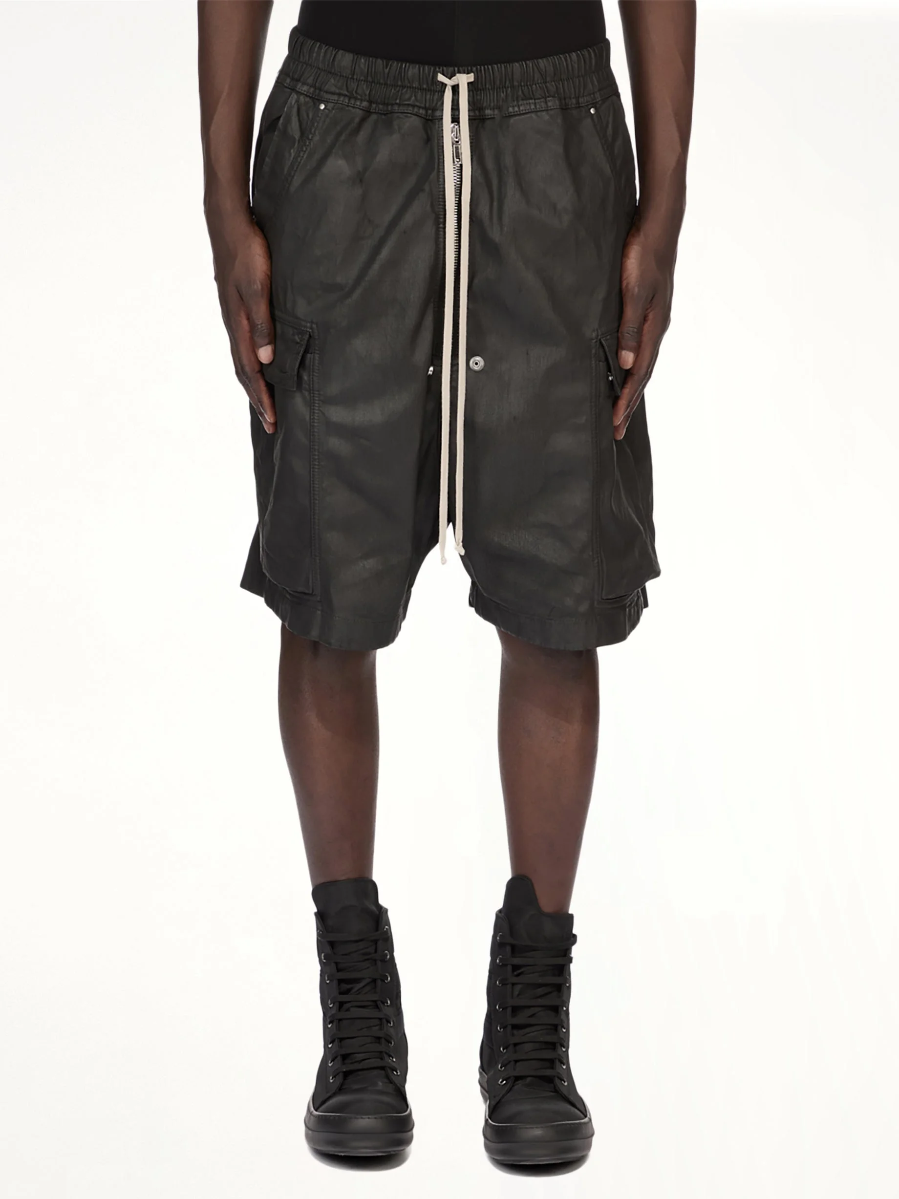 Rick Owens DRKSHDW's SS26 Denim Cargobela Shorts in Black is a bold and versatile addition to any wardrobe. These shorts combine a contemporary silhouette with functional design elements. - Composition: 100%Cotton-Pockets Lining 52%Polyester-48%Cotton- - Relaxed fit with a modern edge - Multiple cargo pockets for added utility - Distinctive black denim finish - Signature Rick Owens aesthetic - Perfect for casual and streetwear looks - Made in Italy Model is 187 cm and wears size M SKU: DU01F4369 DBK 09