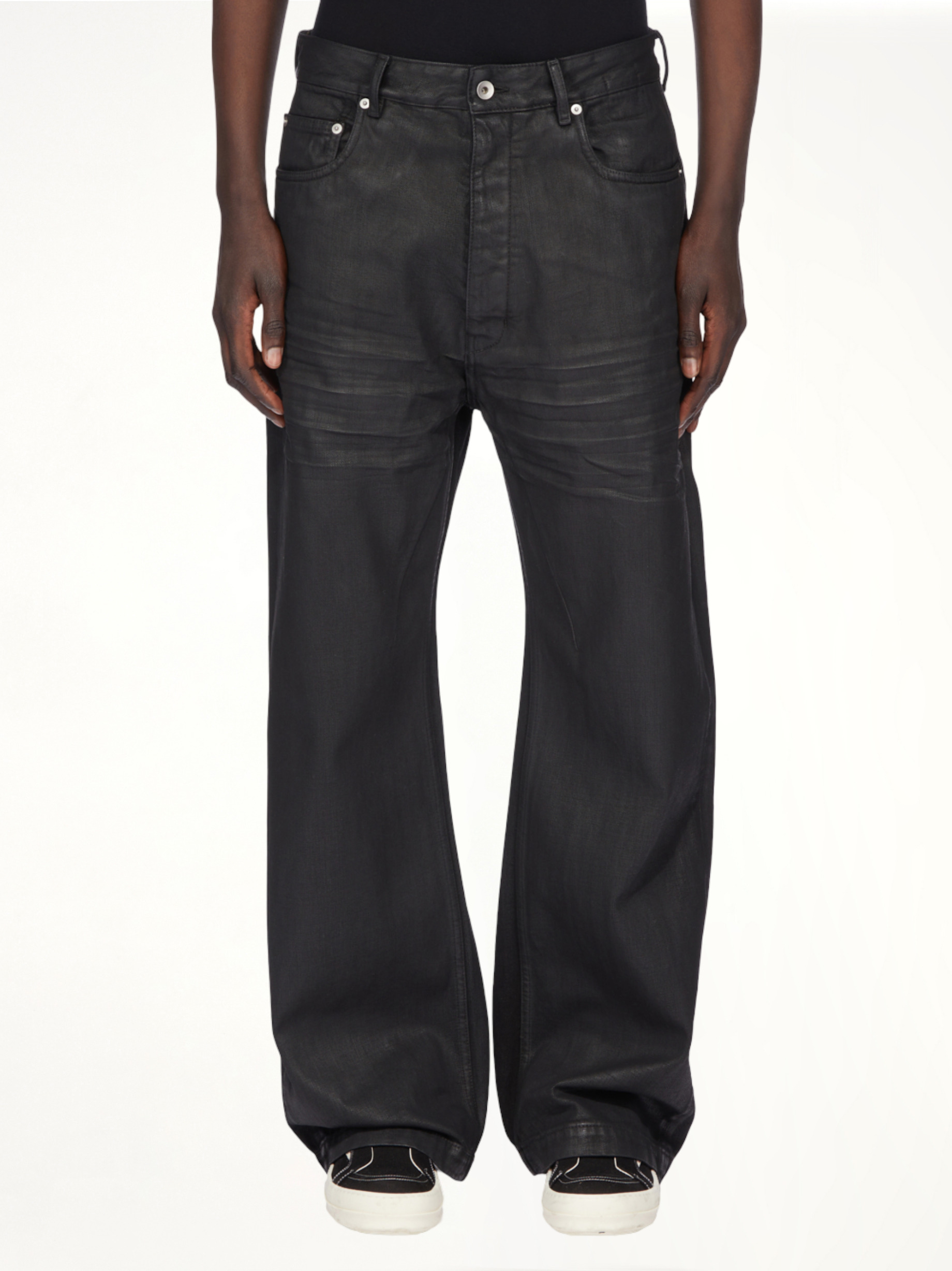Rick Owens DRKSHDW's Geth Jeans in Black Wax is a bold statement piece that combines avant-garde design with everyday wearability. These jeans feature a sleek, waxed finish that adds a touch of edge to any outfit. - Composition: 100%Cotton-Pockets Lining 52%Polyester-48%Cotton- - Slim fit with a tapered leg - Five-pocket styling - Button fly closure - Signature DRKSHDW detailing - Versatile for both casual and formal looks - Made in Italy Model is 187 cm and wears size 32 SKU: DU02E7351 BW 99X