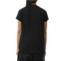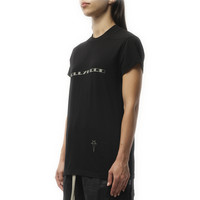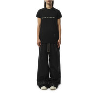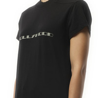 Rick Owens DRKSHDW Hollywood Small Level T in Black/Pearl, a contemporary cropped T-shirt crafted from organic cotton jersey. It features a unique garment-dyed finish and signature front level shoulder seams for a bold look. This T-shirt is a versatile addition to any wardrobe, offering a stylish edge to casual outfits. Composition: 100% Cotton Cropped length, above the hip Front level shoulder seams Centre back seam Black with Pearl accents Made in Italy Model is 175 cm and wears size S. SKU: DS01E3208 RNEP5 0908