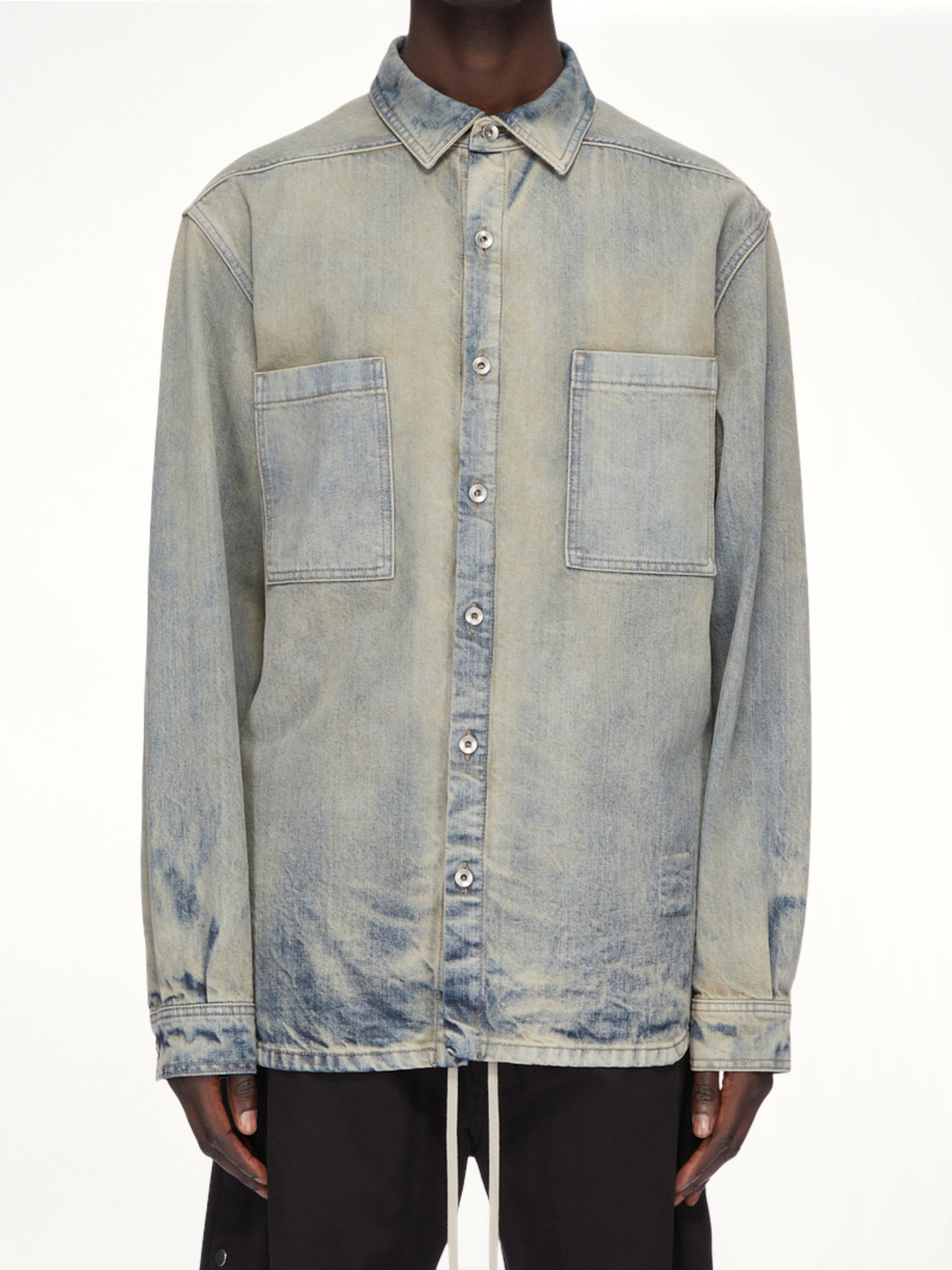 Rick Owens DRKSHDW's Jumbo Outer shirt in Mineral Pearl is a statement piece that combines avant-garde design with everyday functionality. This oversized shirt offers a unique silhouette, perfect for layering or wearing as a standalone piece. - Composition: 100%Cotton- - Oversized fit for a bold, contemporary look - Button-up front closure for versatile styling - Long sleeves with buttoned cuffs - Distinctive Mineral Pearl colourway - Features a classic collar - Two front chest pockets for added utility - Made in Italy SKU: DU02E7769 DMP 38