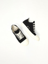 Rick Owens DRKSHDW's Low Sneaks in Black/Milk/Milk is a bold statement in contemporary footwear. These sneakers combine a sleek design with a striking colour palette for a modern edge. - Composition: Upper 100% Cotton, Toe 70% Polyurethane -30% Viscose - Features a low-top silhouette for versatile styling. - Contrasting black and milk tones for a unique look. - Durable construction for everyday wear. - Lace-up closure for a secure fit. - Signature Rick Owens design elements. - Made in Italy SKU: DS02E7802 DO 911