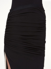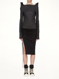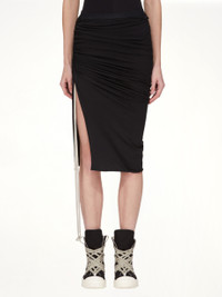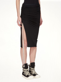 Rick Owens DRKSHDW's Soft EDFU Knee Skirt in Black is a versatile and stylish addition to any wardrobe. This skirt combines a modern silhouette with a comfortable fit, making it perfect for various occasions. - Composition: 100%Cotton- - Knee-length - Soft, flowing fabric - Minimalist aesthetic - Relaxed and comfortable - Elastic waistband closure - Made in Italy SKU: DS02E7335 RN 09