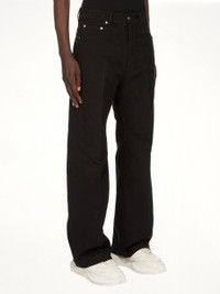 Rick Owens's Geth Jeans in Black offer a sleek and modern silhouette, perfect for elevating any wardrobe. These jeans combine the designer's signature avant-garde style with everyday wearability, making them a versatile addition to your collection. Experience the perfect blend of comfort and cutting-edge fashion with these standout jeans. - Composition: 100% Cotton - Distinctive design with a contemporary fit - Versatile black color for easy styling - High-quality craftsmanship for durability - Ideal for both casual and formal occasions SKU: RU02E1333 TB 09
