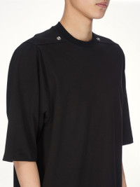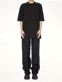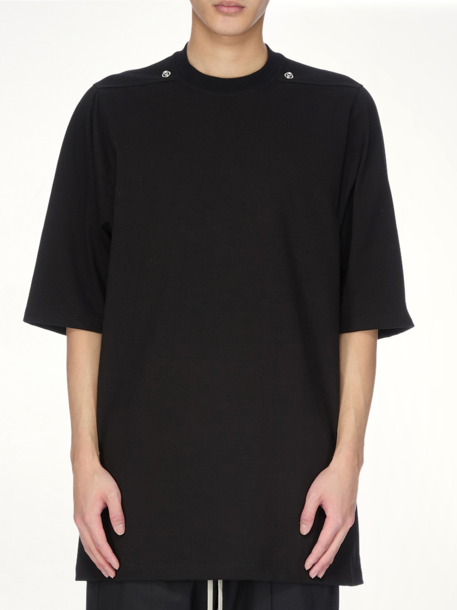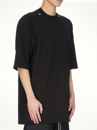 Rick Owens's Jumbo SS Rivet T-Shirt in Black is a bold statement piece that combines avant-garde design with everyday wearability. This oversized t-shirt features unique rivet detailing, adding an edge to your casual wardrobe. - Composition: 100% Cotton - Oversized fit for a relaxed silhouette - Distinctive rivet detailing on the sleeves - Classic crew neck design - Short sleeves for versatile styling - Available in timeless black SKU: RU02E1249 BAES2 09