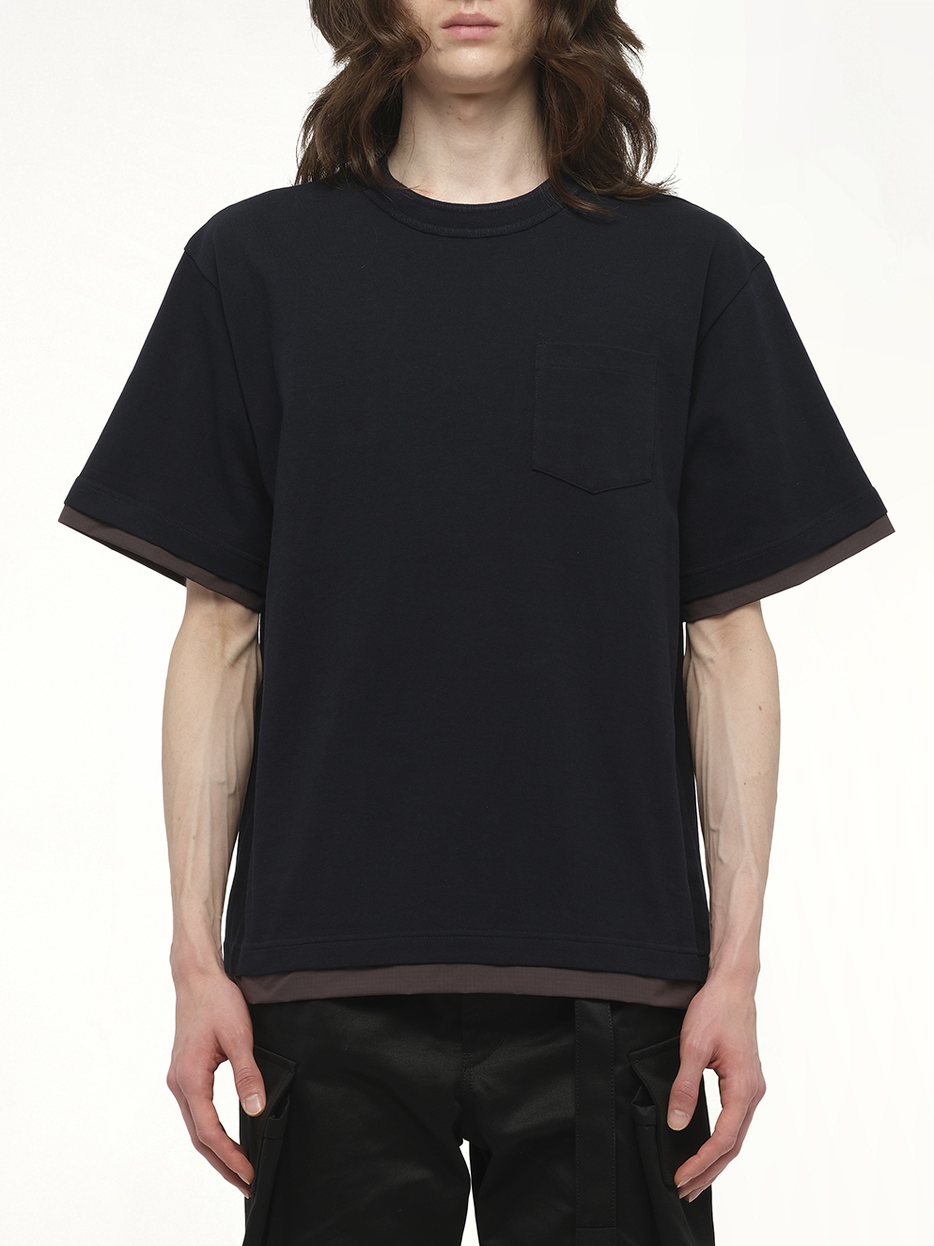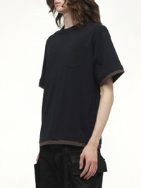SACAI's Cotton Jersey T-Shirt in Navy is a versatile and stylish addition to any wardrobe. This classic piece offers a comfortable fit and a timeless design, perfect for everyday wear. - Composition: Cotton 100%, Attached Parts:Polyester 100% - Classic navy colour - Comfortable fit - Timeless design - Versatile for various occasions Model is 187 cm and wears size 2 SKU: 2503796M 201