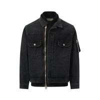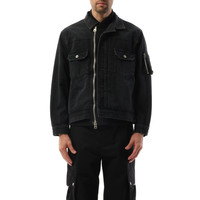 Made with a combination of denim and nylon, this double jacket in black offers durability and versatility. Perfect for any weather, it provides both style and functionality. Ideal for those looking for a fashionable yet practical addition to their wardrobe. - Composition: 100% Cotton - Layered design - Off-center front zip fastening - Long sleeves - Sleeve zip pocket - Buttoned cuffs - Two chest flap pockets Model is 192 cm and wears size 2 SKU: SCM205 001