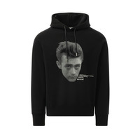 Featuring the iconic James Dean, this black hoodie is a must-have for any fan. Made with high-quality material, it offers both comfort and style. Perfect for a casual day out or a cozy night in, this hoodie is a timeless addition to your wardrobe. - Composition: 100% Cotton - Ribbed cuffs and hem - Slogan print to the rear - Long sleeves - Straight hem Model is 192 cm and wears size 2 SKU: 250923S 001