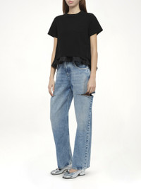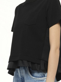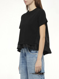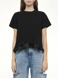 SACAI's Nylon Twill x Cotton Jersey T-Shirt in Black is a versatile piece that combines modern design with classic comfort. Perfect for any occasion, this t-shirt offers a unique blend of style and functionality. - Composition: Cotton 100%, Attached Parts:Nylon 100%, Liner:Cupro 100% - Innovative nylon twill and cotton jersey blend - Relaxed fit for everyday wear - Timeless black color for easy styling - Distinctive design details - Ideal for layering or standalone wear Model is 178 cm and wears size 1 SKU: 2508000 001
