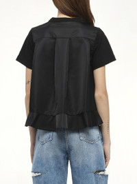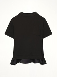 Nylon Twill x Cotton Jersey T-Shirt in Black