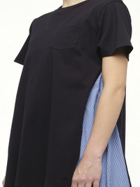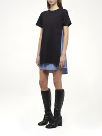 Poplin x Cotton Jersey Dress in Navy/Blue Stripe