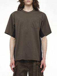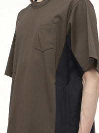 SACAI's Suiting x Cotton Jersey T-Shirt in Khaki/Navy is a versatile piece that effortlessly combines casual comfort with a touch of sophistication. Perfect for any occasion, this t-shirt offers a unique blend of style and functionality. - Composition: Cotton 100%, Attached Parts:Polyester 70%, Wool 30% - Contrasting khaki and navy color scheme - Relaxed fit for everyday wear - Unique suiting-inspired design elements - Ideal for layering or standalone wear Model is 187 cm and wears size 2 SKU: 2503872M 505