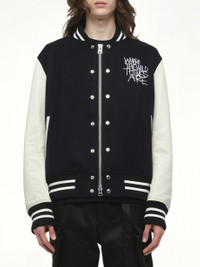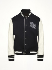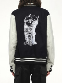 SACAI's WHERE THE WILD THINGS ARE Blouson in Navy/Off White is a statement piece that combines playful design with sophisticated style. This versatile jacket is perfect for adding a touch of whimsy to any outfit. - Composition: Wool 100%, Attached Parts:Cowhide 100%, Polyester 52%, Cotton 47%, Polyurethane 1%, Liner:Cupro 100% - Unique color-blocked design in navy and off-white - Features a relaxed fit for comfortable wear - Detailed with signature SACAI elements - Ideal for layering in transitional weather - Inspired by the classic children's story Model is 187 cm and wears size 1 SKU: 2503861M 204