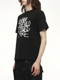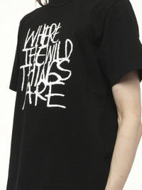 SACAI's WHERE THE WILD THINGS ARE Logo T-Shirt in Black is a stylish tribute to the beloved classic. This t-shirt combines contemporary fashion with nostalgic charm. - Composition: 100% Cotton - Features iconic "Where the Wild Things Are" logo - Classic black color for versatile styling - Comfortable fit for everyday wear - Perfect for fans of the classic story Model is 187 cm and wears size 2 SKU: 2501007S 001