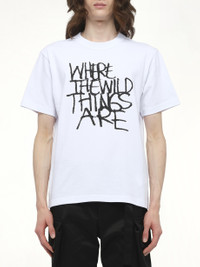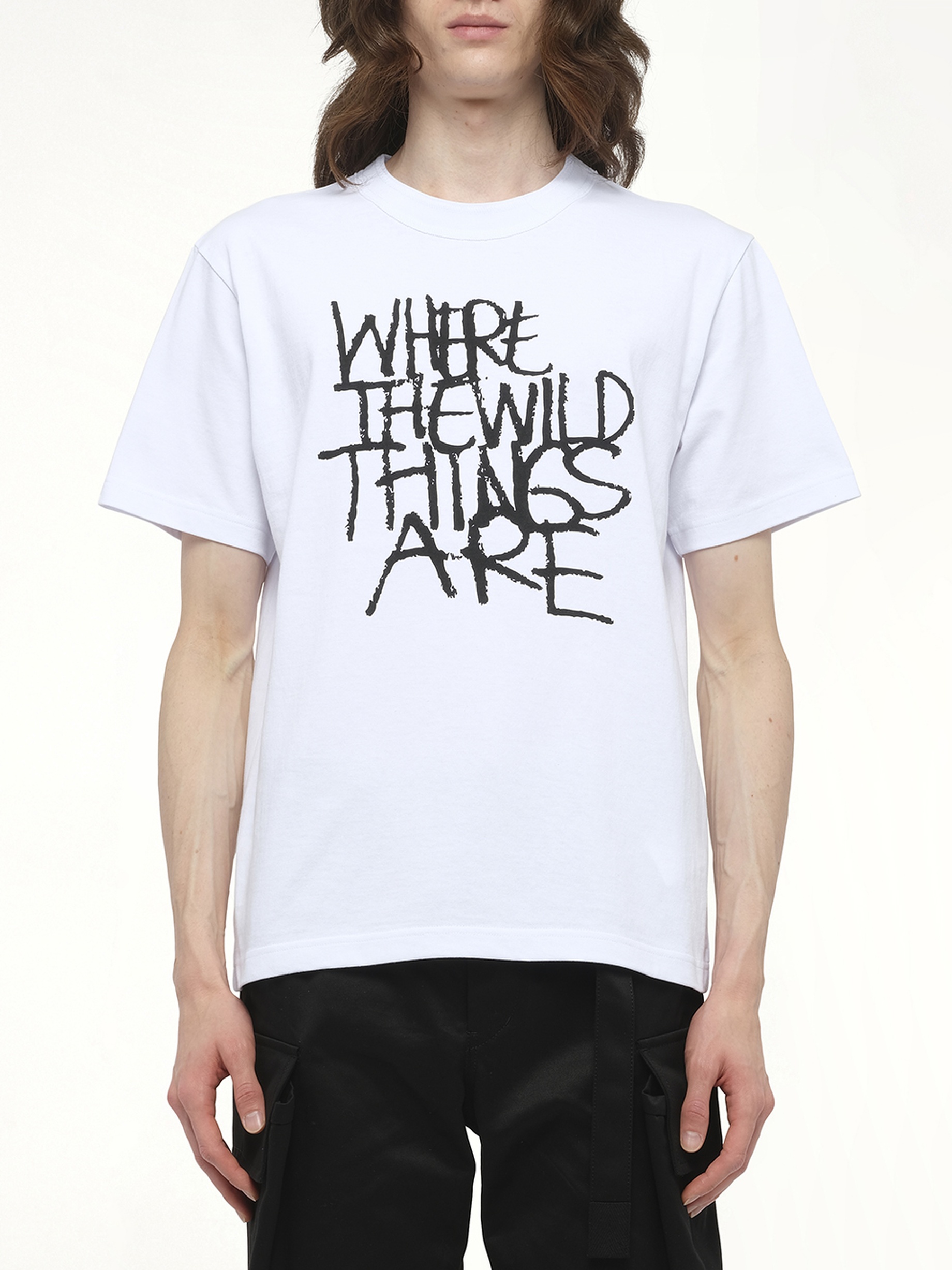 SACAI's WHERE THE WILD THINGS ARE Logo T-Shirt in White is a stylish tribute to the beloved children's book. This tee combines classic design with a playful graphic, making it a must-have for fans and fashion enthusiasts alike. - Composition: 100% Cotton - Features iconic "Where the Wild Things Are" logo - Crisp white color for versatile styling - Comfortable fit for everyday wear - Perfect for casual outings or themed events Model is 187 cm and wears size 2 SKU: 2501007S 101