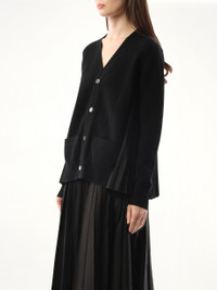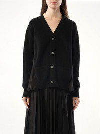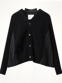 Wool Knit x Cotton Poplin Cardigan in Black