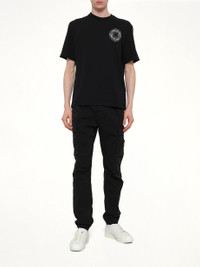 Stone Island's 3100031 Trousers in Black is a versatile and stylish addition to any wardrobe. These trousers offer a sleek design with a focus on comfort and functionality. - Composition: Stretch Organic Cotton Twill, Garment Dyed - Classic black color for easy pairing with any outfit - Features a modern fit for a contemporary look - Equipped with multiple pockets for practicality - Durable construction for long-lasting wear - Signature Stone Island branding for a distinctive touch - Made in - Model is 187 cm and wears size 32 SKU: 3100031S0A10 V0029