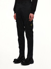 Stone Island's 3100034 Stretch Organic Broken Twill Cotton 'Old' Effect Cargo Pants in Black is a stylish and functional addition to any wardrobe. These cargo pants offer a unique 'old' effect finish, providing a vintage-inspired look. - Composition: 97% Cotton 3% Elastane / Spandex - Features a comfortable stretch fit for ease of movement. - Equipped with multiple pockets for practical storage. - Designed with a broken twill weave for added texture. - Adjustable waist for a customizable fit. - Signature Stone Island branding for a distinctive touch. - Made in: nan Model is 187 cm and wears size 32 SKU: 3100034S00L1 V0129