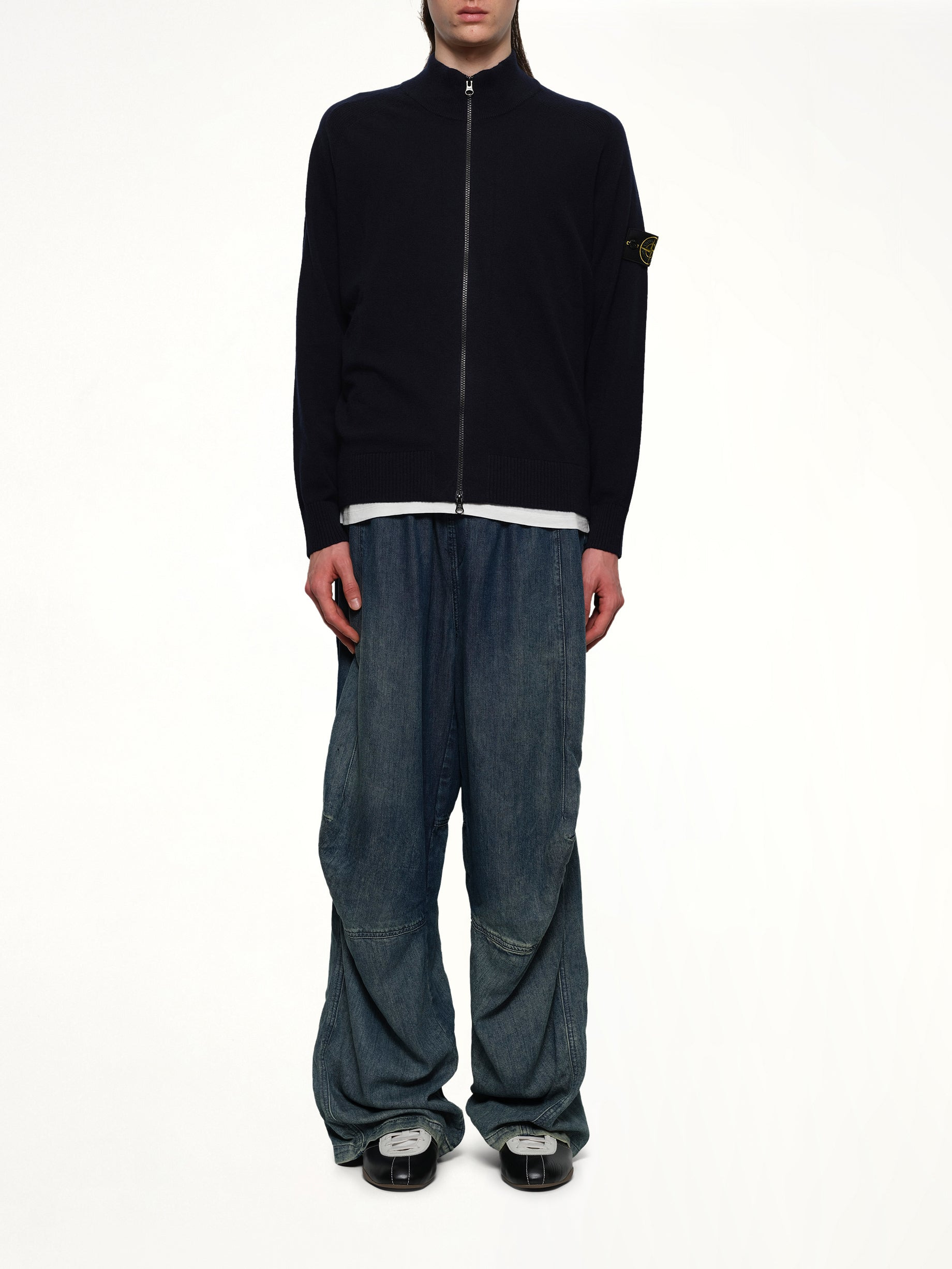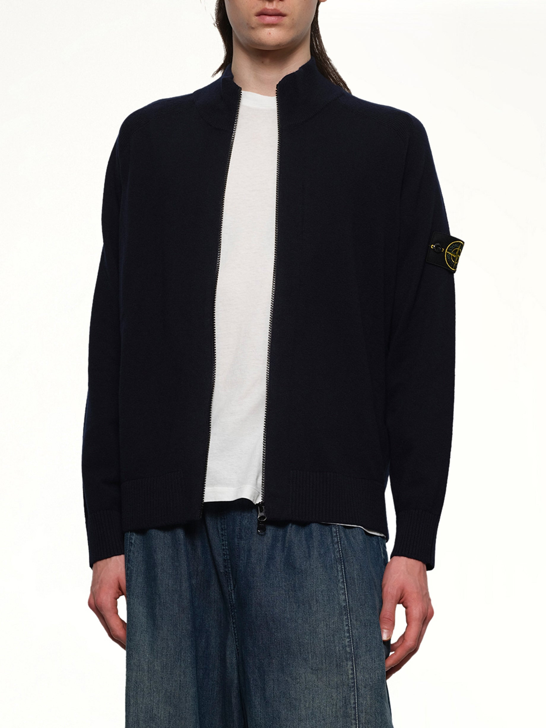 Stone Island's 510004 Zip Knit Cardigan in Navy Blue is a versatile and stylish addition to any wardrobe. This cardigan combines functionality with a sleek design, perfect for layering in cooler weather. - Composition: - - Full zip closure for easy wear - Ribbed cuffs and hem for a snug fit - Signature Stone Island logo patch on the sleeve - Two front pockets for added convenience - Classic navy blue color for timeless appeal - Made in - Model is 187 cm and wears size M SKU: 5100044S00B4 V0020