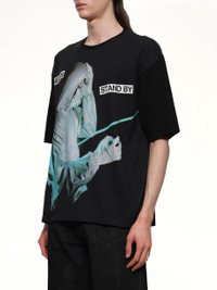Undercover's Heldon Stand By T-Shirt in Black is a stylish and versatile piece that embodies the brand's unique aesthetic. Perfect for casual wear, this t-shirt offers a comfortable fit with a distinctive design. - Composition: 100% COTTON,RIB: 100% COTTON - Classic crew neck style - Features unique graphic print - Short sleeves for a relaxed look - Available in various sizes - Made in: nan Model is 187 cm and wears size 3 SKU: UC2E4813-3 BK