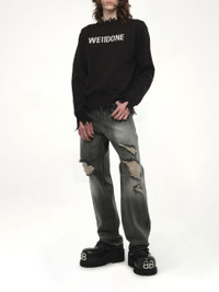 WE11DONE's Grunge Rhinestone Logo Sweater in Black is a bold statement piece that combines edgy style with a touch of sparkle. Perfect for those who want to stand out, this sweater is a must-have addition to any fashion-forward wardrobe. - Composition: Cotton 100% - Features a striking rhinestone-embellished logo - Grunge-inspired design for a unique look - Relaxed fit for comfortable wear - Versatile black color for easy styling Model is 187 cm and wears size M SKU: WDKT125657UBK