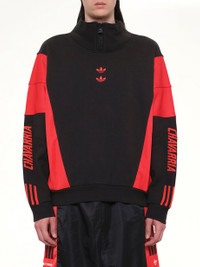 Adidas x Willy Chavarria's Adidas X Chavarria Watsonville Mockneck in Black/Red is a bold and stylish piece that combines modern design with classic sportswear elements. This mockneck top is perfect for making a statement while ensuring comfort and versatility. - Composition: HEAVY COTTON FLEECE &SHINY FLEECE - Features a striking black and red colorway. - Designed with a mockneck collar for a contemporary look. - Part of the exclusive collaboration between Adidas and Willy Chavarria. - Ideal for both casual and athletic wear. - Emphasizes a modern, urban aesthetic. - Made in: nan Model is 187 cm and wears size M SKU: KD9347