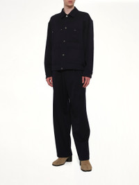 Wooyoungmi's Wool Pleat Trouser in Navy is a sophisticated addition to any wardrobe, offering a blend of modern style and classic tailoring. These trousers are designed to provide both comfort and elegance, making them suitable for various occasions. - Composition: 100% Wool - Classic pleated front for a refined look - Tailored fit with a straight leg silhouette - Versatile navy color for easy pairing - Features side and back pockets for functionality - Zip fly with hook-and-bar closure - Made in South Korea Model is 187 cm and wears size 48 SKU: W261PT07928N