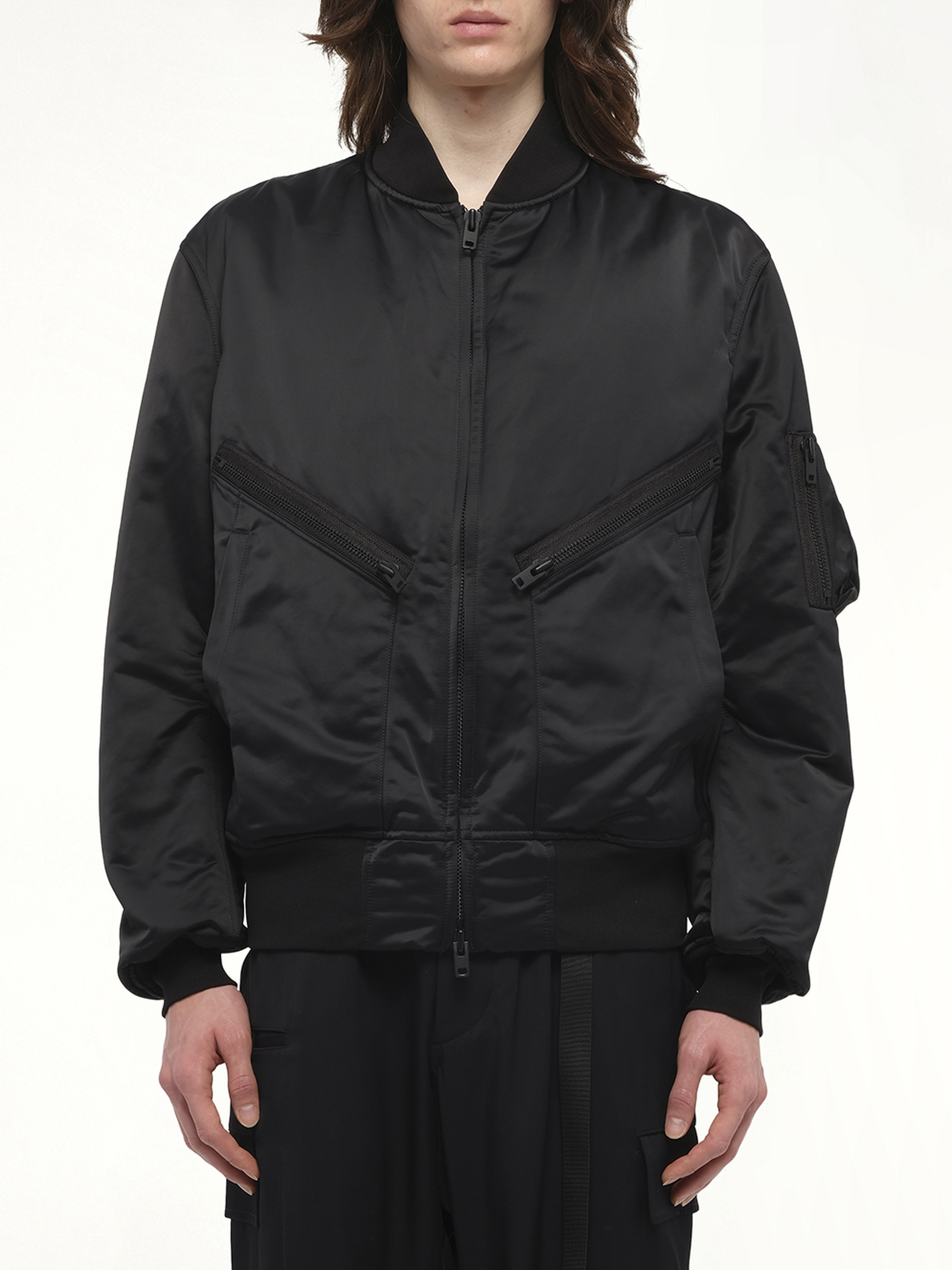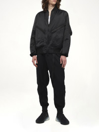 Y-3's Bomber Jacket in Black is a sleek and modern take on a classic silhouette, offering both style and functionality. Perfect for any occasion, this jacket seamlessly blends urban aesthetics with comfort. - Contemporary design with a minimalist approach - Features a front zip closure for easy wear - Ribbed cuffs and hem for a snug fit - Multiple pockets for practical storage - Signature Y-3 branding for a distinctive look - Made in: China Model is 187 cm and wears size M SKU: JX7270