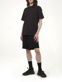 Y-3's Short Sleeve T-Shirt in Black offers a sleek and modern design, perfect for any casual occasion. Its minimalist style and comfortable fit make it a versatile addition to any wardrobe. - Composition: 100%Cotton - Classic crew neck design - Relaxed fit for everyday comfort - Signature Y-3 branding - High-quality craftsmanship Model is 187 cm and wears size M SKU: KB2608