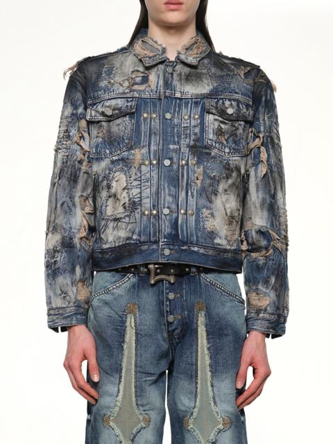 Boke Flower Trucker Jacket in Stone Bleached Black Denim