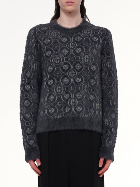 Fluffy Monogram Knit Sweater in Grey