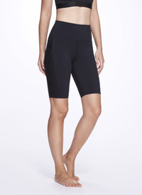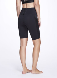 The Ashlyn Short is a black high waisted and knee length short featuring fun lace-up back detailing and power mesh sheer slit pocket details on the sides. These details combined with the compression fit and super smooth performance fabric make these shorts perfect for wearing anywhere and everywhere!