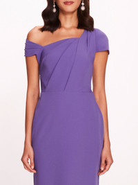 The Asymmetrical Crepe Midi Dress is an asymmetrical slim midi crepe dress with a draped bodice, one short sleeve, and off-shoulder neckline on the opposite side. Sizing and Fit • Silhouettes are designed to fit true to size, following a classic American fit. • Clients familiar with European sizing may wish to consider sizing down for a closer fit. • Many styles are crafted from exquisite woven fabrics, often adorned with delicate embellishments, and are intended to maintain their structure without stretch unless otherwise specified. • For bespoke sizing guidance or personalized assistance, our concierge team is delighted to help at concierge@marchesafashion.com.