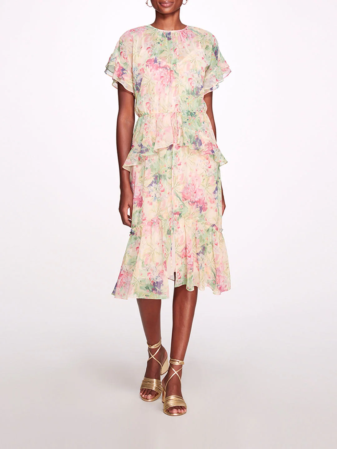 The Lita dress in pink multi is the perfect combination of elegance and comfort. This printed lightweight satin chiffon dress features a drawstring waist and a round neck, making it both flattering and comfortable for all body types. The delicate ruffled detailing adds a feminine touch, making it the perfect dress for any outing. This item will ship in 7–10 business days Details Pictured in pink multi 100% polyester Dry clean only Style ID: R64DM3325