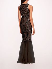 SEQUIN LATTICE STRAPLESS GOWN