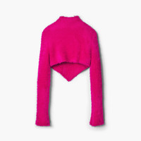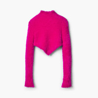 Inspired by shapes and textures seen on the runway, this sweater is designed in a textural fabric and finished with a pointed hem. 2S4RTP010K12 FEATURES 100% Nylon Side seam barcode flag tag