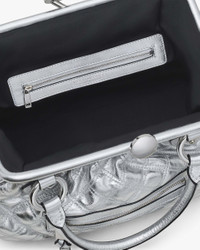Description First seen on the Fall/Winter 2005 runway, the Stam quickly became one of the most popular bags during the early 2000s. Now making an iconic return, the Stam is back in striking metallic silver leather. Made in Italy, this style includes identical features to the original including a removable chain shoulder strap, a luxe lamb leather exterior, the famous kiss lock closure at top, and an all over oversized quilted design. It also includes an exterior zipper pocket and one interior zipper pocket for extra organization. 2R3HSC035H01 Features Lamb leather Metal frame with kiss lock closure Shoulder chain strap 1 exterior zipper pocket, 1 interior zipper pocket Dust bag included Dimensions 14in L x 5in D x 9in H 36cm L x 13cm D x 24cm H Strap 33in L x 1in D (85cm L x 3cm D) Strap Drop 10in (25cm) Handle Drop 5in (13cm)