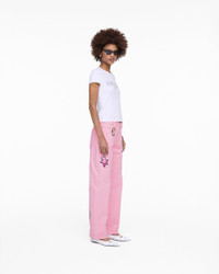Description A mid-rise straight cut jean crafted in premium dyed denim, this playfully sophisticated silhouette is thoughtfully adorned with runway-inspired placed prints celebrating iconic archival Marc Jacobs charms. Featuring signature back-pocket “M” stitching, a button-fly closure, 5 pockets for optimized functionality and a relaxed fit, pair this silhouette with the Runway Charm Shirt for a perfectly coordinated set. 2S5RBT001D09 Features 100% Cotton "M" stitching at back pocket, custom logo tack buttons and rivets Tack buttons, rivets Button fly Mid rise, relaxed, straight cut leg, Ddaisy patch at back pocket with hot fix crystal border, custom placed archival charm motifs Sizing Mid Rise. Fits true to size Taken from size 26 Waist 29.9" Hip 38.2" Inseam 31.0"