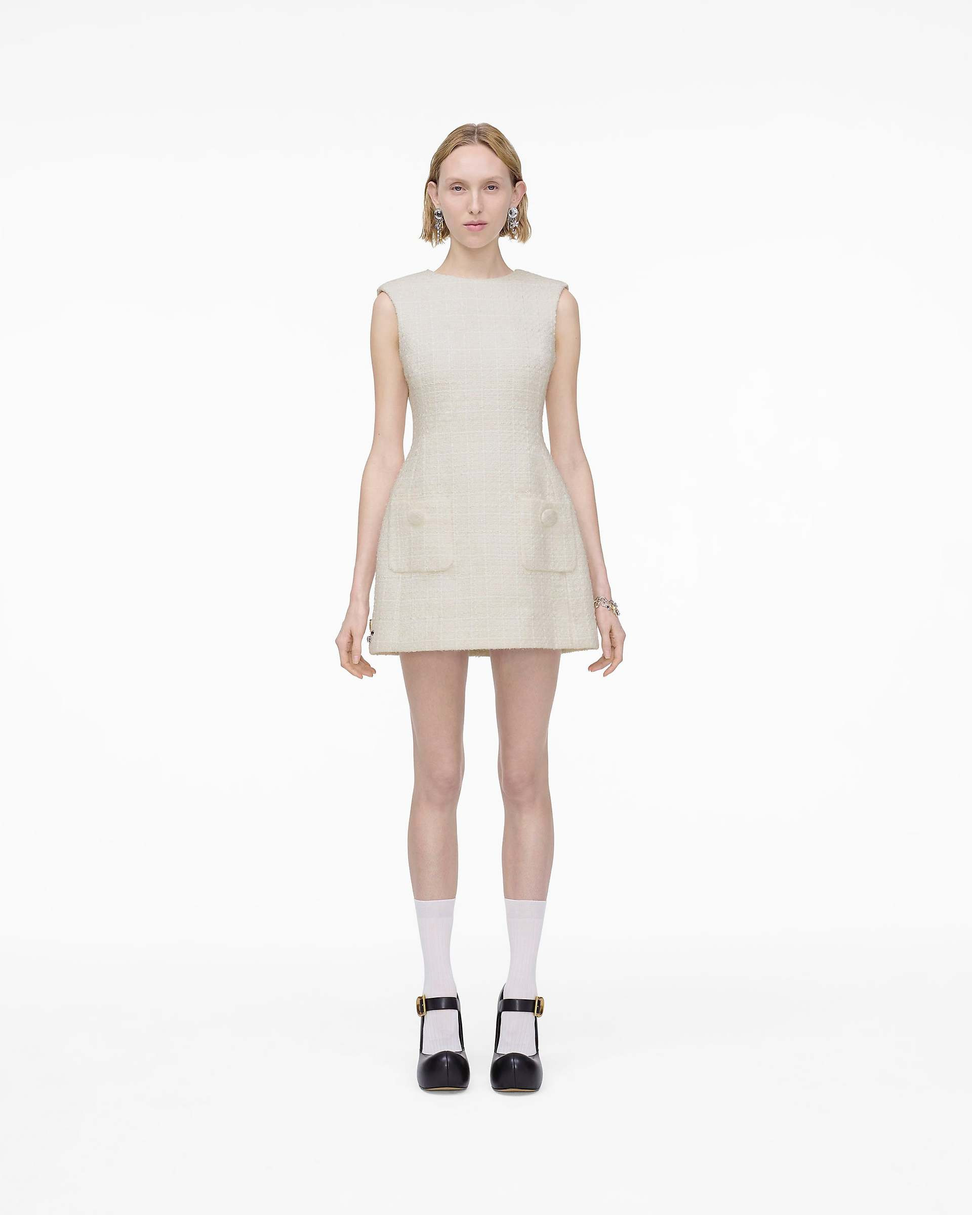 Description Influenced by the doll-like proportions of the Fall’24 Runway, the Sculptural Tweed Dress embraces a notably feminine silhouette with this mini-length Little Black Dress. Featuring a runway-inspired high rounded neckline, a classic textural tweed fabrication and shoulder pads for a structured look, this day-to-night essential includes two front pockets with tweed-covered half-dome button detailing and an effortless zipper back closure. 2S5RDR072W14 Features 38% Acrylic, 25% Cotton Silk Blend, 25% Polyester, 12% Viscose Zipper closure Invisible zipper at centerback Patch pockets at front, half dome self covered snap shank buttons at placket and pockets Sizing Fits true to size. Meant to be slightly fitted Taken from size 4 Bust 34.5" Length 30.5" Waist 28.3"