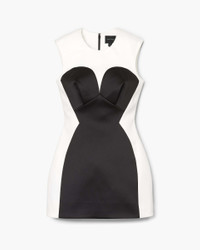 Description Crafted from duchess satin for a luxe, weighted feel, this sculpted mini dress is designed to enhance shape. A high, rounded neckline and sculptural bust pleat reference runway construction, while its striking design creates the illusion of added definition. On-seam pockets offer functionality, and an invisible back zipper keeps the finish sleek. 2F5RDR084W10 Features 100% Polyester Sizing Standard fit . Fits true to size. Meant to be slightly fitted at waist. Model is wearing size 2 Height: 5'10" 1/2 Bust: 31.5" Waist: 23" Hips: 34"
