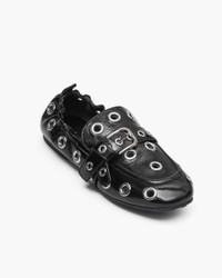 Description This leather loafer has a soft square toe and easy to slip on elasticated heel. A classic style gets an edgy makeover with a buckle and silver grommet details throughout. Sole features Marc Jacobs daisy branding. 2S6FFL001F11 Features Leather Upper Rubber Sole Pu Footbed Dimensions 11mm heel height 5mm pitch