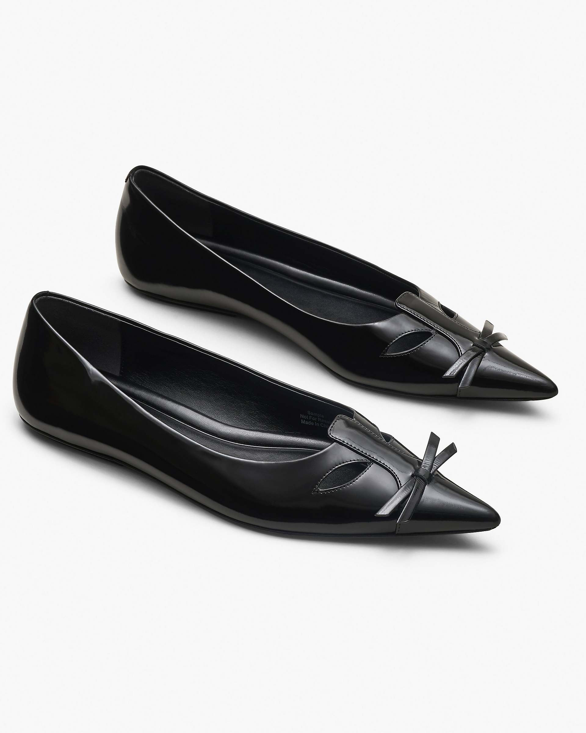 Description A pointed-toe ballet flat with a playfully charming Marc Jacobs twist. This cat-inspired silhouette features a cushioned insole for enhanced comfort and elevated handcrafted detailing with hand-sewn whiskers and ornamental cat-eye cutouts. Crafted in luxurious Spazzolato leather, this silhouette adds effortless texture and character to any outfit. 2F4FFL001F11 Features Spazzolato leather upper PU footbed Leather sole Slip-on Sizing 5mm heel Pointed toe, regular fit