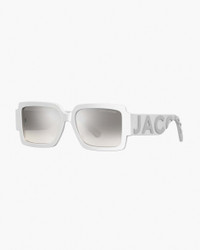 The signature branding from our most-loved tote bags is reimagined in these oversized square-framed sunglasses finished with mirrored lenses. M8000850 FEATURES Acetate frame and temple Shaded UV Protective Lens Compatible with Prescription Lens MARC JACOBS laser logo on lens Gray mirror shaded lens High relief colorblock logo on temples DIMENSIONS Lens Width: 55MM Bridge Length: 17MM Temple Length: 145MM