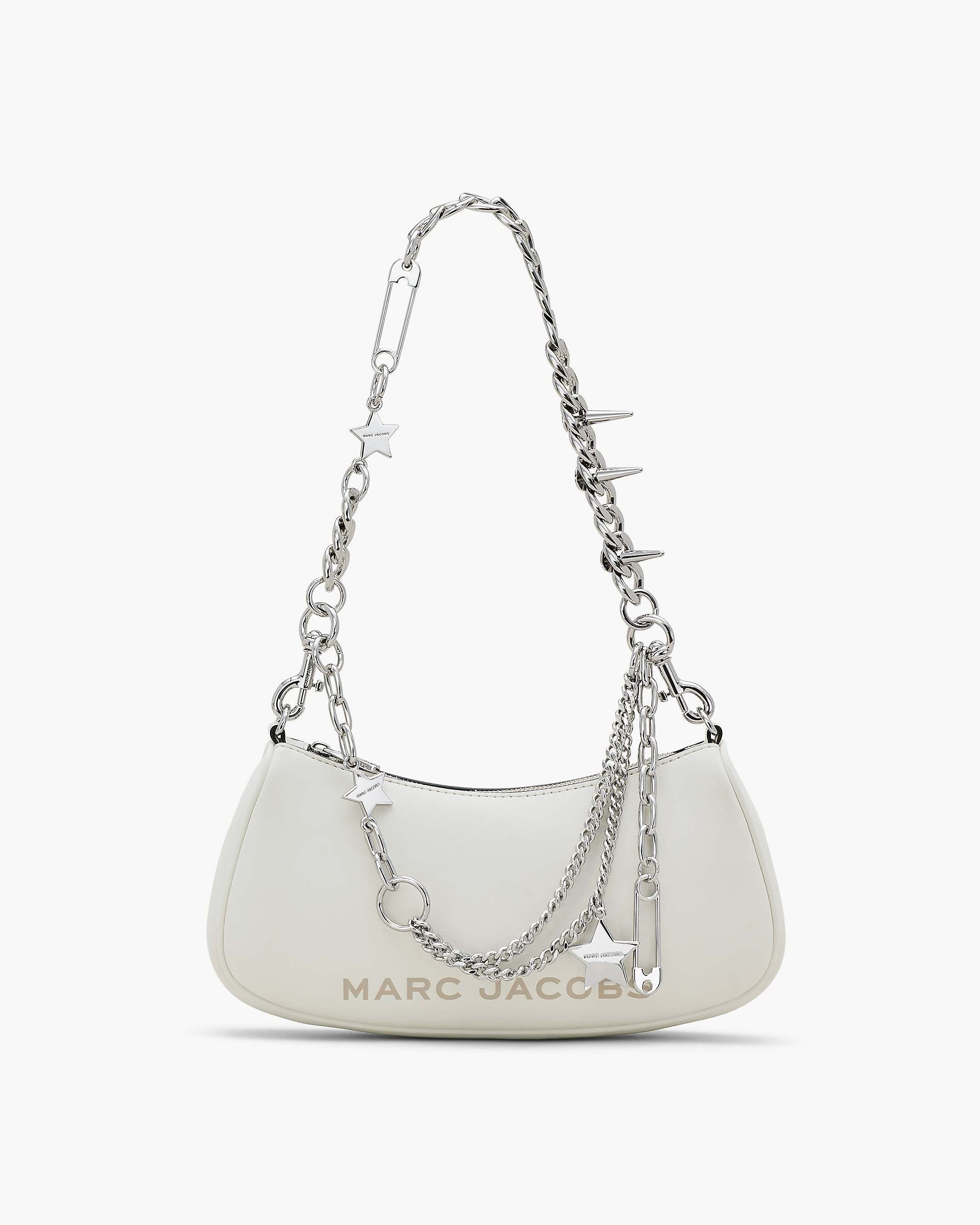 Description Stylishly playful and perpetually youthful, the Star Charm Shoulder Bag exudes Marc's unmistakable spirit with a novel silhouette designed for comfortable over-the-shoulder styling. Crafted in smooth leather, this handbag features one removable leather shoulder strap, and a charm-adorned multi-layered chain strap, which can be attached for elevated over-the-shoulder styling, or as draping decorative accent. 2R4HSH038H02 Features Smooth Leather Magnetic Closure Removable Leather Shoulder Strap, Removable Chain Shoulder Strap Faille Lining Dustbag Included Dimensions 10in L x 2in D x 6in H 25cm L x 4cm D x 14cm H Strap 21in L x 1in D (52cm (With Dogclip) L x 2.3cm (Chain) D) Strap Drop 10in 25cm (Chain)